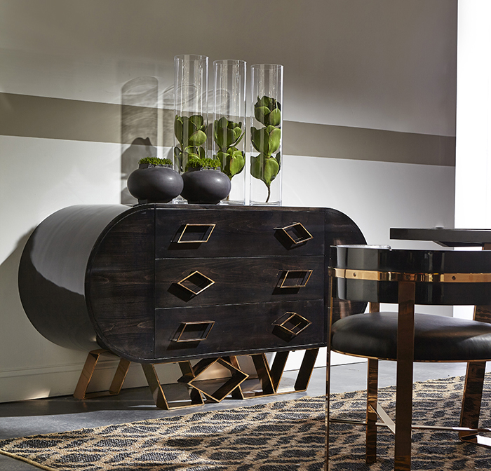 Kelly believes that texture has the power to add depth and sensuality to a room and she elegantly plays with materials to create designs that are iconic, retro and reflective of her sophisticated East-West design philosophy.
