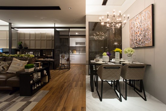 本項(xiàng)目呈現(xiàn)空間如何能以虛實(shí)關(guān)系去定義領(lǐng)域的限定,利用玻璃、金屬和木作的搭配,轉(zhuǎn)借輕盈的材料暗喻領(lǐng)域的分屬,這些元素讓公共空間得到開闊的效果,也保有臥室的隱私性。設(shè)定居家風(fēng)格時,刻意保留挑高與開放的空間,設(shè)定大尺度窗戶,概念取法像紐約蘇豪區(qū)的工業(yè)元素,再以現(xiàn)代感語匯,注入都會時尚氣息,并活潑的呈現(xiàn)每個空間機(jī)能的特性與實(shí)用性。