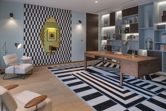 為了讓藝術(shù)在空間中得到更好的詮釋?zhuān)@些藝術(shù)元素不僅僅反映在墻面,地面及天花上,設(shè)計(jì)團(tuán)隊(duì)親自為該項(xiàng)目設(shè)計(jì)定制家具以及如地毯等飾品,使裝飾藝術(shù)呈現(xiàn)出更好的效果。我們也相信,設(shè)計(jì)一個(gè)空間,不僅僅是讓空間本身充滿(mǎn)想象,同時(shí)它應(yīng)該讓周遭的人獲得跟多靈感。如此一間集文化及藝術(shù)于一身的雅致幽所,必定吸引對(duì)生活有著獨(dú)到品味的人,他們可能也會(huì)與設(shè)計(jì)師一樣喜歡欣賞Koloman Moser 的畫(huà)作,亦或是像Kay Sage,F(xiàn)rancis Picabia 或者Ettore Sottasaa這些藝術(shù)巨匠。