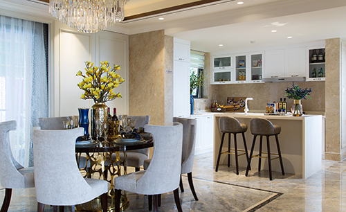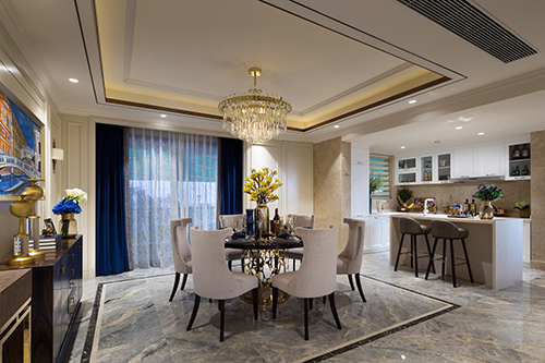 在這套206平米的空間中個(gè),4房2廳3衛(wèi)4陽臺(tái)加入戶花園,墅級(jí)尊崇尺度,三大獨(dú)立起居室確實(shí)讓人驚艷一番。整體簡約的歐式家具配以藍(lán)色系軟裝,以硬朗的材質(zhì)和明快的色調(diào)、雅致的配飾,賦予空間沉穩(wěn),典雅,輕松的神采。本方案力求簡約,自然,隨意的筆觸演繹簡歐風(fēng)格的大氣與和諧。
