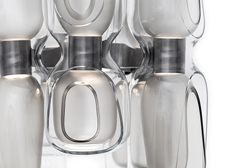 Eve燈飾由 15 個(gè)玻璃元素組成,以一種和諧的方式排列在一起。這款枝形吊燈將傳統(tǒng)玻璃制造技術(shù)與設(shè)計(jì)師知名的參數(shù)設(shè)計(jì)風(fēng)格結(jié)合于一體。這款“Eve” 非常符合Hadid 的設(shè)計(jì)語言,將流動(dòng)與天然有機(jī)結(jié)合,不透明與透明元素的巧妙融合最終打造出出這款迷人的作品。