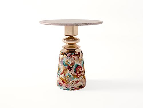 Alessandro La Spada從經(jīng)典產(chǎn)品Cortes 上得到靈感,設(shè)計(jì)了這個(gè)風(fēng)格鮮明、精巧高雅的新餐廳空間。包括一個(gè)橢圓形桌子和圓形輪廓的椅子。大理石桌子的基座由白色的圓錐形結(jié)構(gòu)和鍍金的不規(guī)則柱子構(gòu)成,給予強(qiáng)大的支撐力的同時(shí)也帶來層次豐富的視覺享受。
