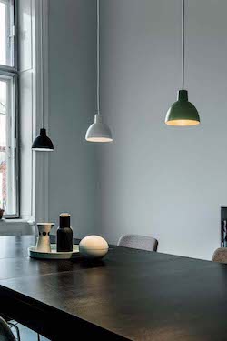 The minimalist design of the Toldbod 120 pendant makes it the perfect fit in all kinds of furnishing solutions, both as a solitary element and in repetitive set-ups. You can also choose to mix the colours or to stick with a single version. In brief, you have every opportunity to create an intensely individual lighting layout. At the same time, the design is so discreet that the Toldbod 120 blends seamlessly into rooms equipped with other light fittings.