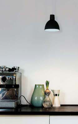 The excellent lighting properties of the Toldbod 120 pendant makes it ideal for use in many different residential settings: above the table in the kitchen, for example, or as a component in still life arrangements designed to create a special atmosphere in the room. The concentrated downward directed light adds life and character to the items illuminated.