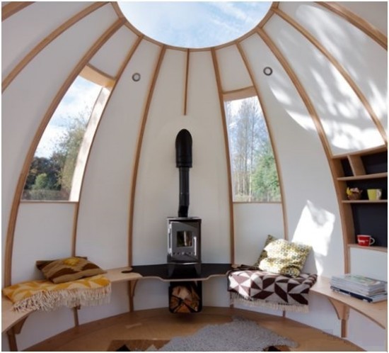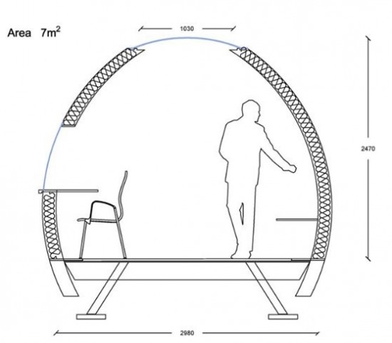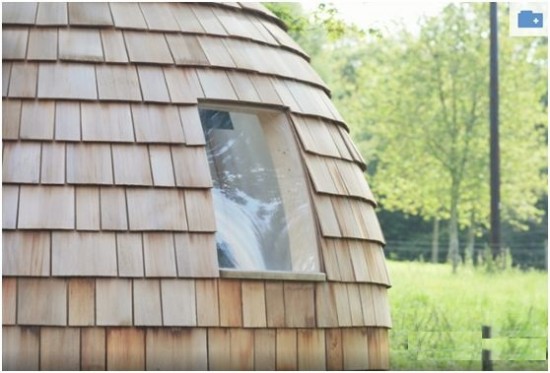 這個建筑最為顯著的特點是它運用木制鉸鏈的機械原理所構成的猶如太空艙一般的塞形艙門。整個艙室坐落于一個離地面半米高的可旋轉平臺上。
