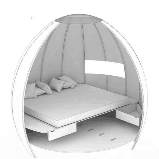 “世外桃源”艙室是一個橢圓形的,可旋轉的,豆莢仿生結構艙室。