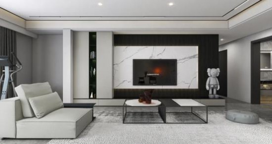 定制大理石電視背景墻紋理自然,黑白設(shè)色極簡純粹,一展大宅風(fēng)雅。寬闊的生活動線大氣從容,CBD家居·黑金 | HZ221、HZ222茶幾,幾何構(gòu)型呈現(xiàn)簡約之美,精巧輕盈,增強(qiáng)空間通透感。