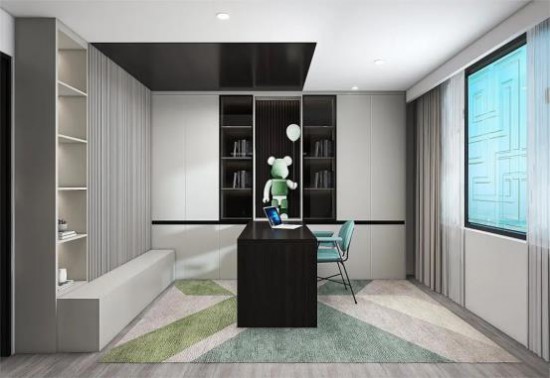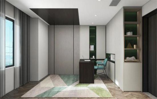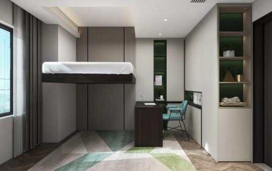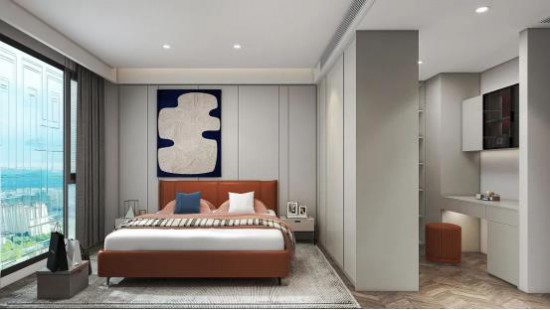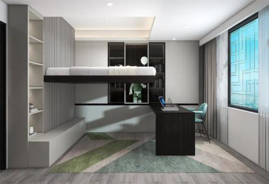 科技賦能,臥室的睡眠區(qū)、學(xué)習(xí)區(qū)采用動態(tài)陳設(shè),將空間極致利用。智能升降床、功能書桌,便捷輕巧,改變空間格局,定制入墻柜,擴(kuò)大收納,生活空間更顯整潔美觀。