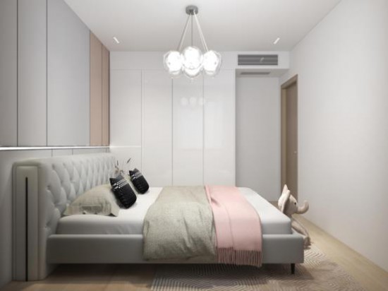 在原有的空間布局上,以簡凈的設計手法重塑意境,清淺的色彩組合傳達出沉靜溫柔的空間情緒。