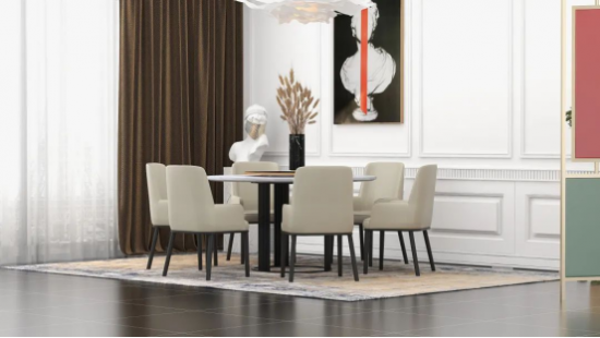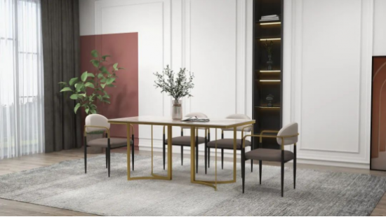 搭配拉絲淺玫瑰金亮光桌腳,點綴出空間氣質(zhì);桌腳造型別具幾何對稱之美,承重更穩(wěn)固。