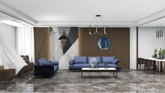 比如,將大理石元素運用于客廳,鋪貼在背景墻上(一整面墻或是局部),自然的紋理、純凈的底色,可以讓這個兼具會客功能的生活區(qū)域更具品質(zhì)感與格調(diào),美觀大氣。