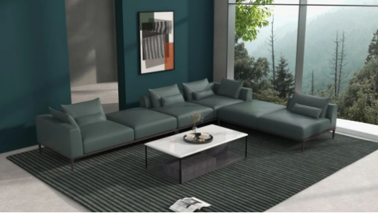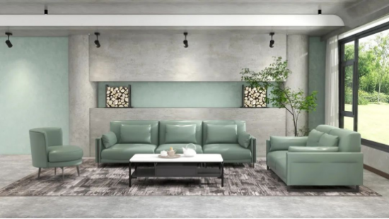 沙發(fā)的綠調(diào)比豆綠淺且?guī)в幸欢ǖ幕叶?,雖然低調(diào),但也具有獨特的溫柔氣質(zhì),營造出舒緩靜謐的氛圍感。