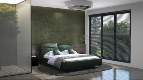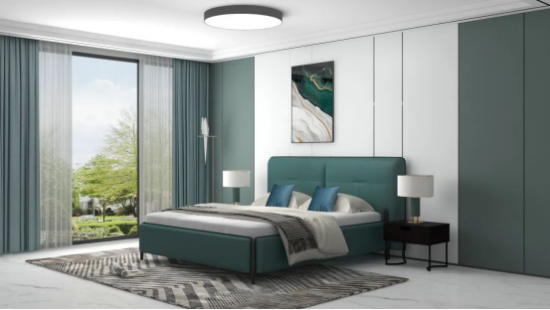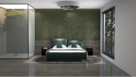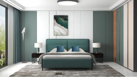 深綠泛青謂之蒼綠,色調(diào)溫雅平和,為臥室?guī)盱`動的自然意趣,與同為綠色系的背景墻呼應,更添雅致。